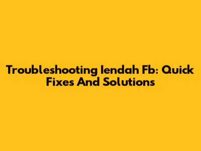 Troubleshooting Iendah Fb: Quick Fixes And Solutions