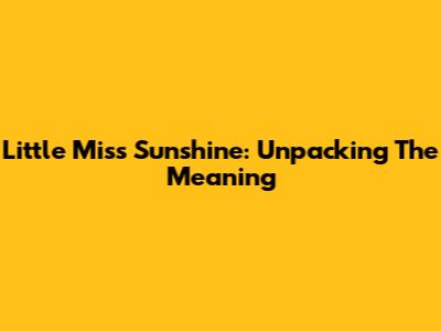Little Miss Sunshine: Unpacking The Meaning