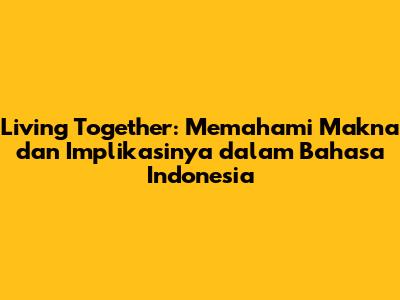 Living together, atau yang sering kita dengar dengan istilah hidup bersama, adalah sebuah frasa yang memiliki makna mendalam dalam konteks sosial dan budaya kita. Dalam bahasa Indonesia, frasa ini merujuk pada praktik di mana dua orang atau lebih memilih untuk tinggal bersama dalam satu tempat tinggal yang sama, tanpa adanya ikatan pernikahan yang sah secara hukum. Artikel ini akan membahas secara mendalam mengenai arti dari living together, implikasinya, serta bagaimana pandangan masyarakat Indonesia terhadap fenomena ini.