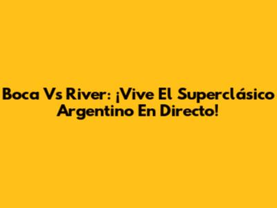 Boca Vs River: ¡Vive El Superclásico Argentino En Directo!