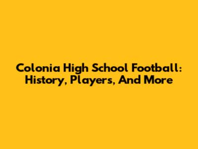 Colonia High School Football: History, Players, And More