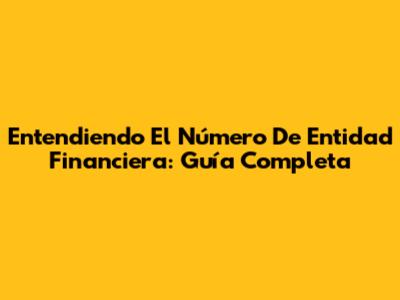 Entendiendo El Número De Entidad Financiera: Guía Completa