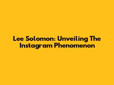 Lee Solomon: Unveiling The Instagram Phenomenon