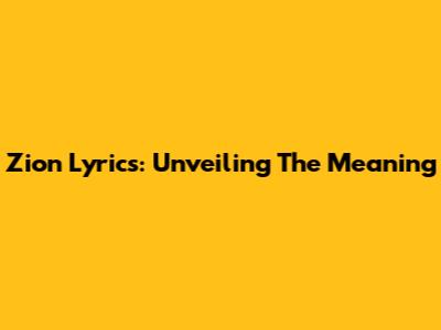 Zion Lyrics: Unveiling The Meaning