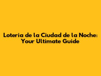 Hey guys! Ever heard of the Loteria de la Ciudad de la Noche? If not, buckle up because you're in for a treat! This isn't just any lottery; it's a thrilling experience steeped in culture and brimming with opportunities. Let's dive into everything you need to know about this exciting game, from its origins to how you can play and potentially win big. Ready? Let’s get started!