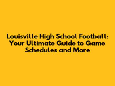 Louisville High School Football: Game Schedules & More