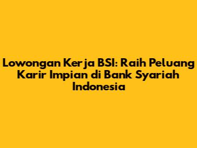 Lowongan Kerja BSI (Bank Syariah Indonesia) merupakan kesempatan emas bagi kalian yang ingin berkarir di industri perbankan syariah. BSI, sebagai bank syariah terbesar di Indonesia, menawarkan berbagai peluang pekerjaan menarik bagi para pencari kerja dengan beragam latar belakang pendidikan dan pengalaman. Dalam artikel ini, kita akan membahas secara komprehensif mengenai lowongan kerja di BSI, mulai dari persyaratan, cara melamar, hingga tips sukses agar lamaran kalian dilirik oleh tim rekrutmen BSI.