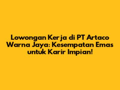 Lowongan kerja di PT Artaco Warna Jaya adalah kesempatan emas untuk mengembangkan karir. Dengan persiapan yang matang dan usaha yang keras, kamu pasti bisa meraih impianmu. Jadi, jangan ragu untuk mencoba dan terus berusaha. Semangat!
