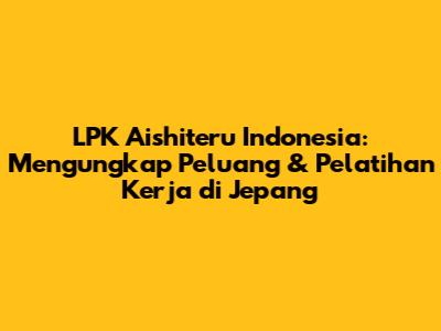 LPK Aishiteru Indonesia adalah lembaga pelatihan kerja yang fokus pada penyediaan pelatihan dan bimbingan bagi calon tenaga kerja Indonesia yang ingin bekerja di Jepang. Lembaga ini memiliki visi untuk menjadi mitra strategis bagi pemerintah dan industri dalam menciptakan tenaga kerja yang berkualitas dan berdaya saing global. Didirikan dengan tujuan untuk menjembatani kesenjangan antara kebutuhan industri di Jepang dan kualifikasi tenaga kerja di Indonesia, LPK Aishiteru Indonesia menawarkan program pelatihan yang komprehensif dan terstruktur.