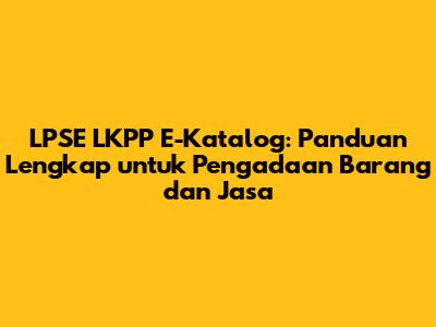Apa Itu LPSE LKPP E-Katalog? Membongkar Konsepnya