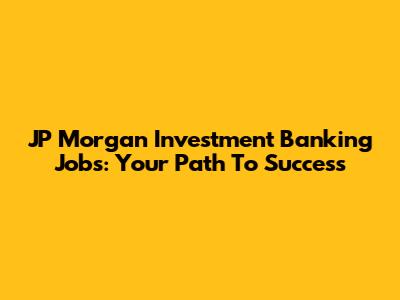 JP Morgan Investment Banking Jobs: Your Path To Success