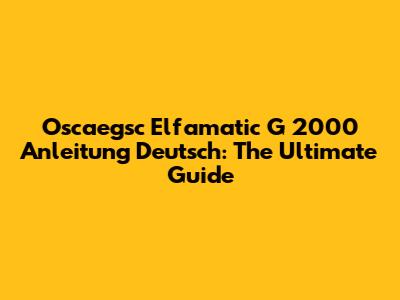 Oscaegsc Elfamatic G 2000 Anleitung Deutsch: The Ultimate Guide