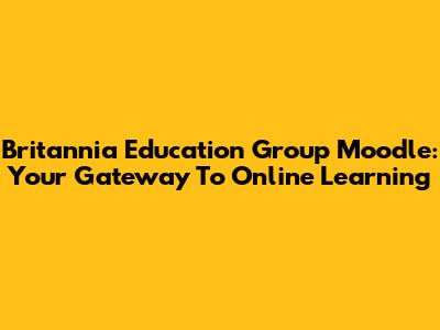 Britannia Education Group Moodle: Your Gateway To Online Learning
