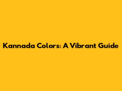 Kannada Colors: A Vibrant Guide