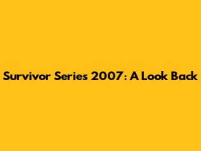 Survivor Series 2007: A Look Back