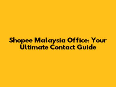 Shopee Malaysia Office: Your Ultimate Contact Guide