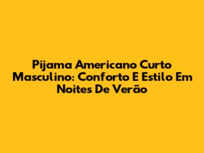 Pijama Americano Curto Masculino: Conforto E Estilo Em Noites De Verão