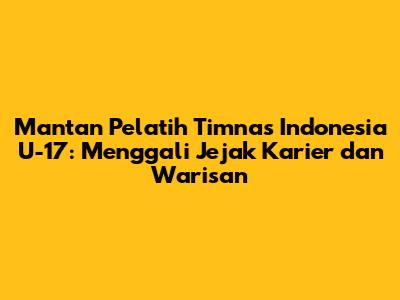 Banyak mantan pelatih Timnas Indonesia U-17 yang telah memberikan kontribusi signifikan terhadap perkembangan sepak bola usia dini di Indonesia. Beberapa nama yang patut mendapat perhatian khusus adalah mereka yang berhasil membawa tim meraih prestasi membanggakan, atau mereka yang memiliki pengaruh besar dalam membentuk pemain-pemain muda berkualitas. Setiap pelatih memiliki gaya melatih dan filosofi yang berbeda, namun tujuan mereka tetap sama: membina pemain muda dan membawa nama Indonesia bersinar di kancah internasional.