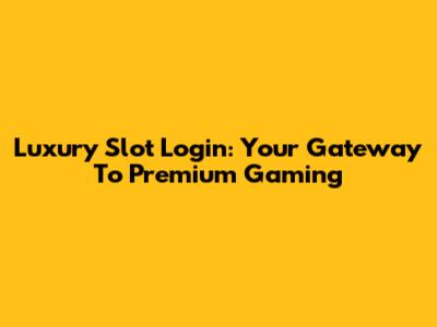 Luxury Slot Login: Your Gateway To Premium Gaming
