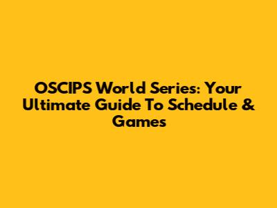 OSCIPS World Series: Your Ultimate Guide To Schedule & Games