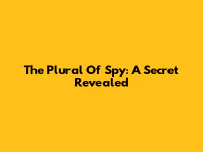 The Plural Of Spy: A Secret Revealed