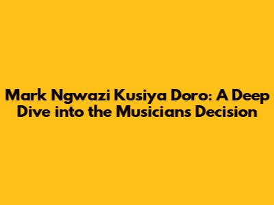 In conclusion, Mark Ngwazi's decision to kusiya doro is a personal one, and it's essential to respect his choice. Whether you agree with it or not, it's a reflection of his values, his goals, and his journey. As fans, we can support him by continuing to listen to his music, engaging with his content, and respecting his decisions.