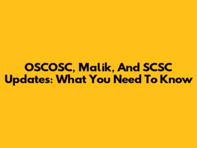 OSCOSC, Malik, And SCSC Updates: What You Need To Know