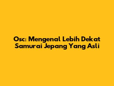 Osc: Mengenal Lebih Dekat Samurai Jepang Yang Asli