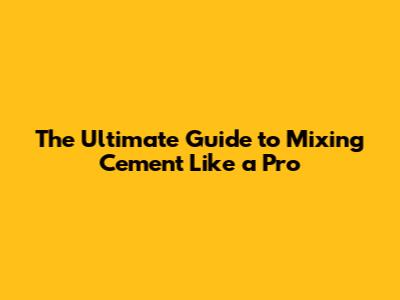 The Ultimate Guide to Mixing Cement Like a Pro