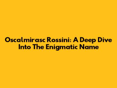Oscalmirasc Rossini: A Deep Dive Into The Enigmatic Name