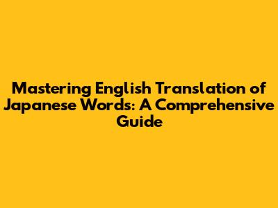 Advanced Strategies for Mastering English Translation of Japanese Words