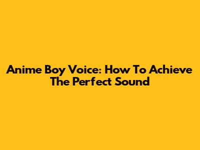 Anime Boy Voice: How To Achieve The Perfect Sound