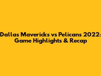 Hey basketball fans! Let's dive into a thrilling matchup from 2022: the Dallas Mavericks versus the New Orleans Pelicans. This game was a rollercoaster of emotions, showcasing incredible plays, nail-biting moments, and standout performances from both sides. Whether you're a die-hard fan or just catching up, we'll break down the key highlights and provide a comprehensive recap of this memorable game. Buckle up, because we're about to relive some serious basketball magic!
