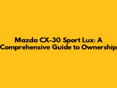 Hey guys! So, you've got your hands on a Mazda CX-30 Sport Lux – awesome choice! This compact SUV is a real looker, packed with features, and a blast to drive. But like any car, keeping it in tip-top shape requires a little TLC. That's where this guide comes in. We're diving deep into everything you need to know about owning and maintaining your CX-30 Sport Lux. From routine maintenance to troubleshooting common issues, we've got you covered. Get ready to become a CX-30 pro! Let's get started on this Mazda CX-30 Sport Lux journey.