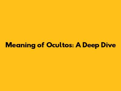 Meaning Of 'Ocultos': A Deep Dive