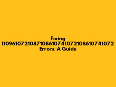 Fixing I109610721087108610741072108610741072 Errors: A Guide
