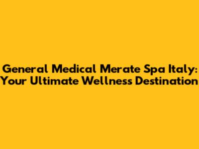 Hey guys! Ever dream of escaping to a place where you can relax, rejuvenate, and take care of your health all at the same time? Well, look no further than Merate, Italy! This charming town is home to some incredible medical spas that combine the best of healthcare and wellness. Let's dive into what makes General Medical Merate Spa Italy a must-visit for anyone seeking a holistic approach to well-being.