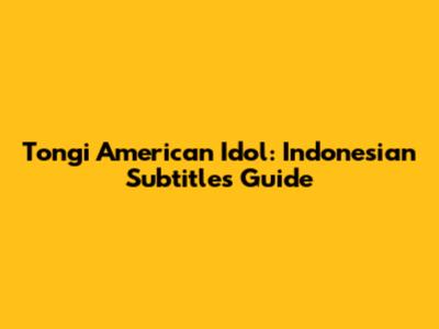 Tongi American Idol: Indonesian Subtitles Guide