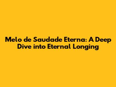 Hey guys! Ever felt that saudade so profound it feels like it's etched into eternity? That's what we're diving into today with "Melo de Saudade Eterna." It's more than just a song title; it's an emotion, a state of being, a whole vibe. We're going to unpack what this feeling means, how it resonates in music and culture, and why it hits us so darn hard. So, buckle up, grab your tissues (just in case!), and let's get started!
