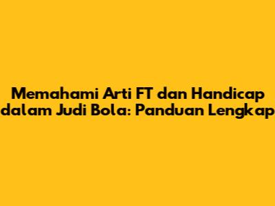 Guys, kalau kalian suka banget sama dunia judi bola online, pasti sering banget denger istilah FT dan handicap, kan? Nah, artikel ini khusus buat kalian yang masih bingung atau penasaran sama arti dari kedua istilah penting ini. Kita bahas secara detail, mulai dari pengertian dasar sampai cara bacanya biar kalian makin jago pasang taruhan.