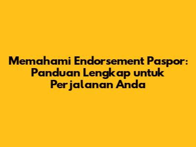 Memahami endorsement paspor adalah langkah penting dalam merencanakan perjalanan internasional Anda. Dengan memahami jenis, fungsi, dan cara mendapatkannya, Anda dapat memastikan perjalanan Anda berjalan lancar dan tanpa hambatan. Jadi, luangkan waktu untuk melakukan riset, mempersiapkan dokumen, dan mengajukan aplikasi endorsement Anda jauh-jauh hari sebelum keberangkatan Anda. Selamat bepergian, guys!