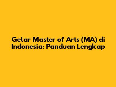 Gelar Master of Arts (MA) adalah gelar pascasarjana yang diberikan kepada mereka yang telah menyelesaikan program studi tingkat lanjut di bidang seni, humaniora, ilmu sosial, dan beberapa disiplin ilmu lainnya. Program MA umumnya berfokus pada pengembangan keterampilan penelitian, analisis kritis, dan kemampuan untuk berpikir secara mendalam tentang isu-isu kompleks. Di Indonesia, gelar ini seringkali menjadi persyaratan untuk posisi tertentu di sektor publik maupun swasta, serta sebagai landasan untuk melanjutkan ke jenjang pendidikan yang lebih tinggi, seperti program doktor (PhD).