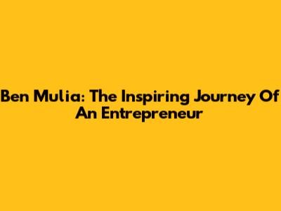 Ben Mulia: The Inspiring Journey Of An Entrepreneur