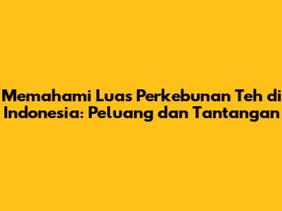 Luas perkebunan teh di Indonesia merupakan sebuah topik yang sangat menarik, guys. Industri teh di Indonesia memiliki sejarah panjang dan memainkan peran penting dalam perekonomian negara. Memahami luas perkebunan teh ini bukan hanya sekadar mengetahui angka, tapi juga melibatkan pemahaman tentang dinamika industri, peluang yang ada, serta tantangan yang perlu dihadapi. Dalam artikel ini, kita akan menjelajahi secara mendalam mengenai luas perkebunan teh di Indonesia, mulai dari sejarahnya, faktor-faktor yang memengaruhi, hingga prospek dan tantangan di masa depan. Yuk, kita mulai!