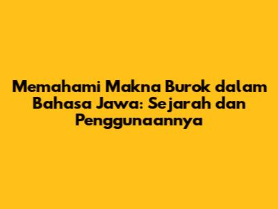 Apa arti burok dalam bahasa Jawa? Pertanyaan ini seringkali muncul bagi mereka yang tertarik dengan kekayaan budaya Jawa. Kata "burok" sendiri memiliki akar yang dalam dalam tradisi dan kepercayaan masyarakat Jawa, dan pemahaman tentangnya membuka jendela menuju pemahaman yang lebih dalam tentang nilai-nilai dan pandangan hidup orang Jawa. Mari kita selami lebih dalam untuk mengungkap makna sebenarnya dari kata "burok" ini, serta bagaimana ia hadir dalam berbagai aspek kehidupan masyarakat Jawa.