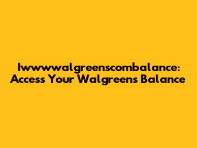 Iwwwwalgreenscombalance: Access Your Walgreens Balance
