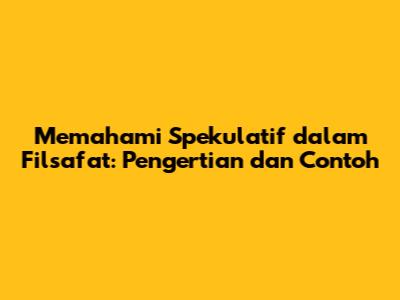 Apa Itu Spekulatif dalam Filsafat?