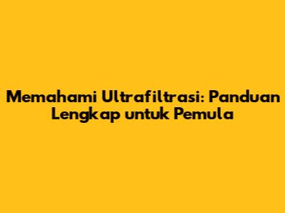 Apa Itu Ultrafiltrasi?