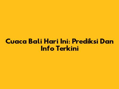 Cuaca Bali Hari Ini: Prediksi Dan Info Terkini