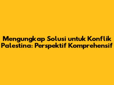 Palestina, sebuah wilayah yang sarat sejarah, budaya, dan konflik berkepanjangan, telah menjadi pusat perhatian dunia selama beberapa dekade. Konflik Palestina, yang melibatkan berbagai aktor dan kepentingan, telah menciptakan penderitaan yang mendalam bagi rakyat Palestina dan berdampak luas pada stabilitas regional. Dalam artikel ini, kita akan menyelami solusi untuk permasalahan Palestina, menganalisis berbagai perspektif, dan mengidentifikasi potensi langkah-langkah yang dapat membawa perdamaian dan keadilan bagi semua pihak.